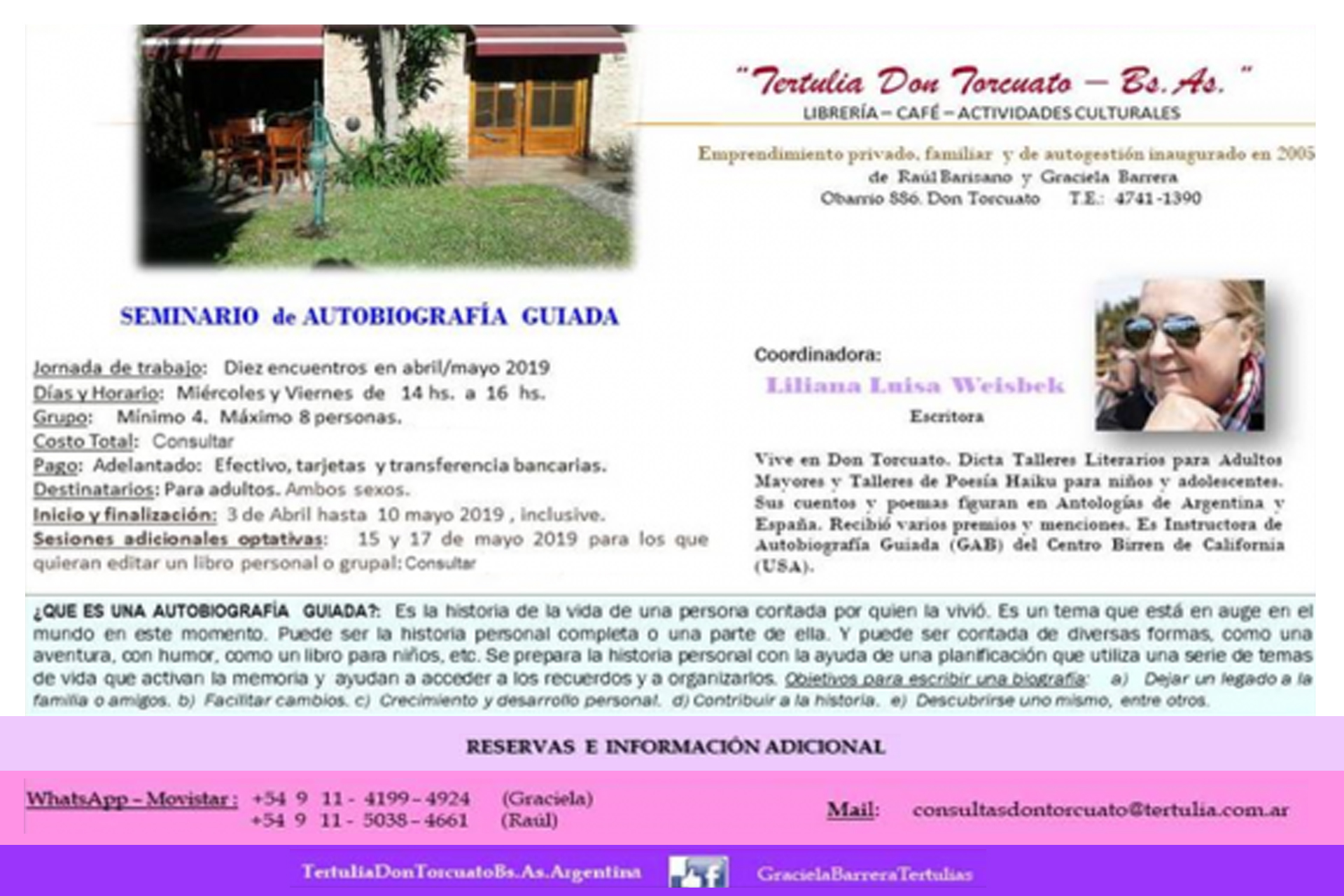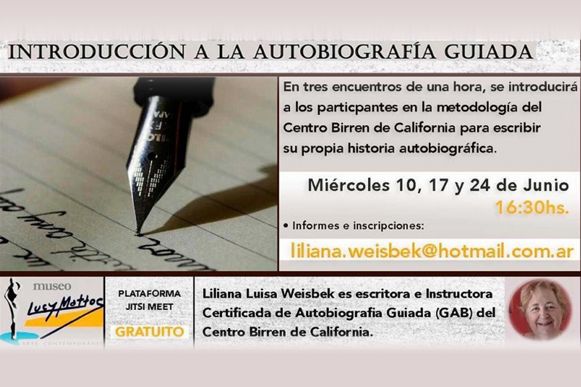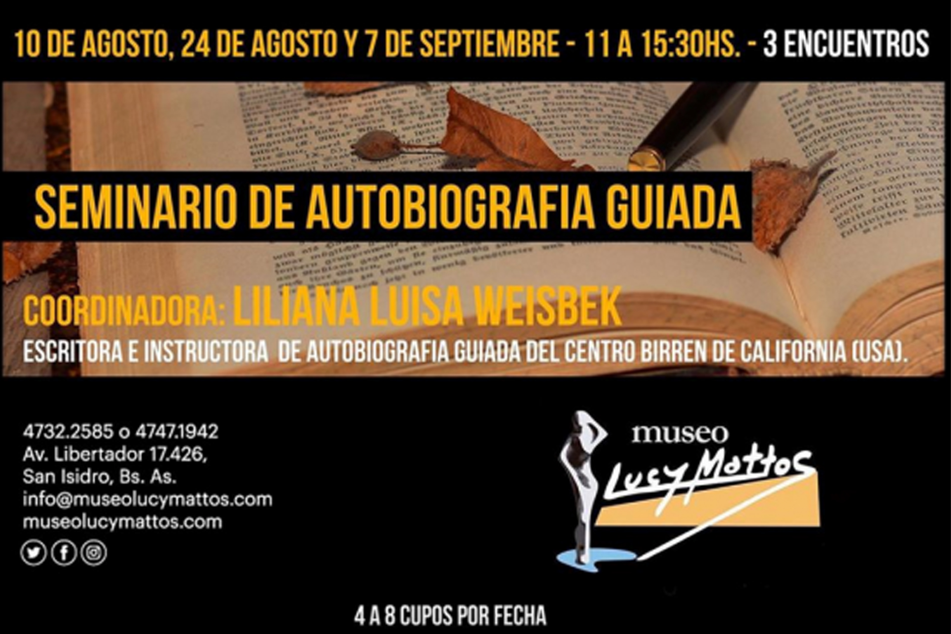 • Clínica Intensiva de Autobiografía Guiada: Cuatro encuentros mensuales de cinco horas de duración.
